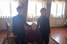 В рамках месячника патриотического воспитания учащиеся 10 класса посетили труженика тыла Сатыбалову Унеслу Сидуловну