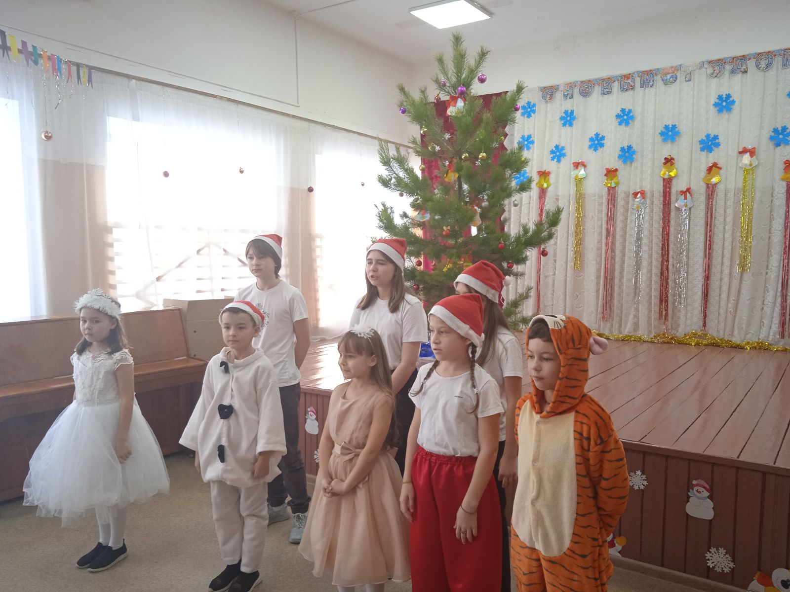27 декабря в 1-6 классах был проведен новогодний КВН. Учащиеся были поделены на 4 команды, подготовили визитку команды, музыкальное поздравление и новогодний танец. Праздник прошел весело и интересно