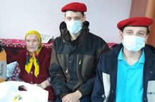 Поздравляли ветеранов труда с праздником, участники отряда Юнармейцев и волонтеров.