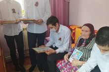 В рамках акции «У войны не женское лицо» ученики 10 класса посетили труженицу тыла Сатыбалову Уняслу Сидуловну. В годы войны она работала сначала в сельском медпункте, затем в колхозе. Работала на военном заводе в городе Казань: работала на токарном станке. После войны работала в школьной столовой поваром.
