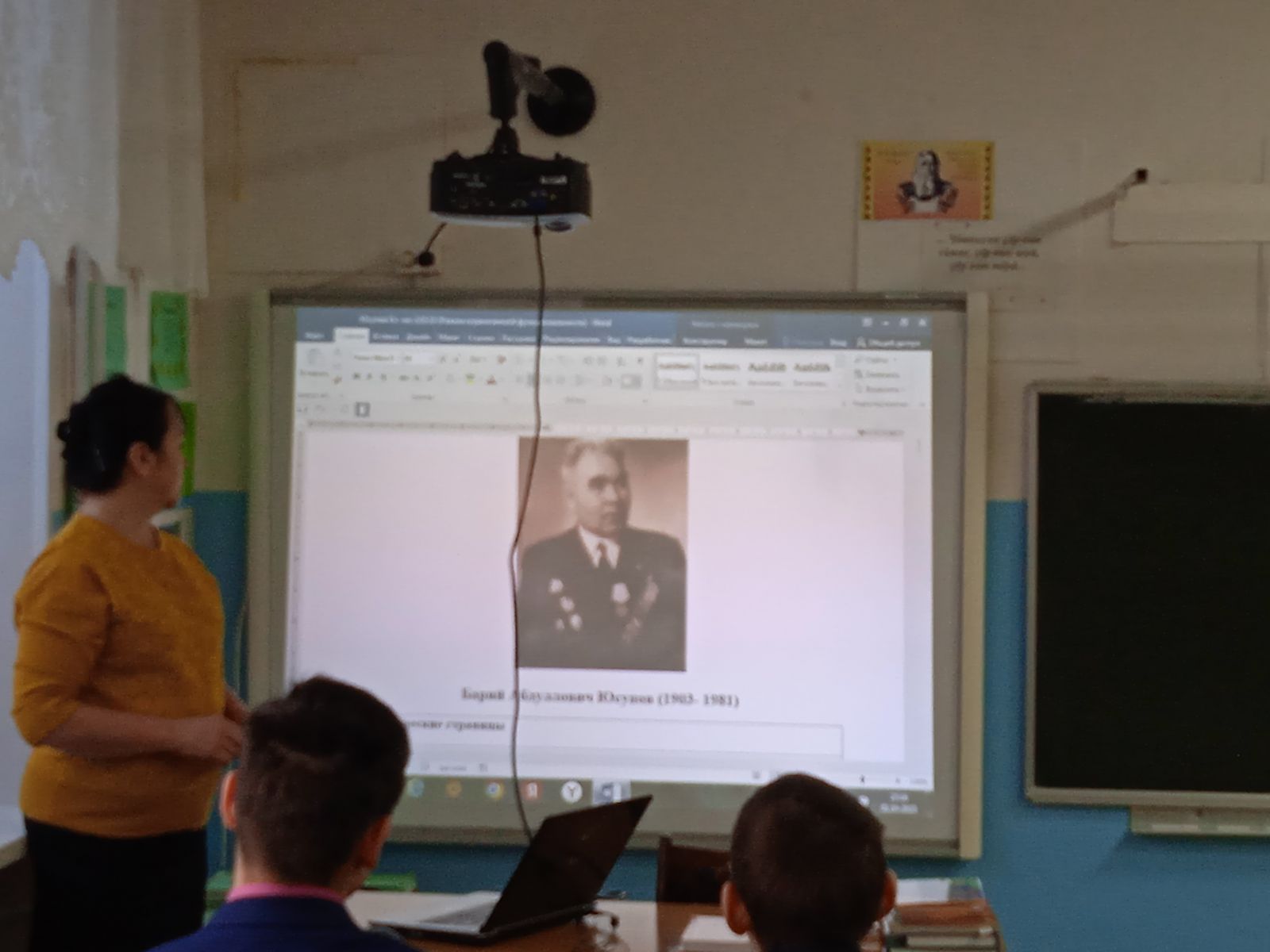 Опубликовано: 02.03.20232 марта в 1-10 классах был проведен Единый урок памяти, посвященный 120-летию первого командира огненных "катюш" Юсупова Бари Абдуловича