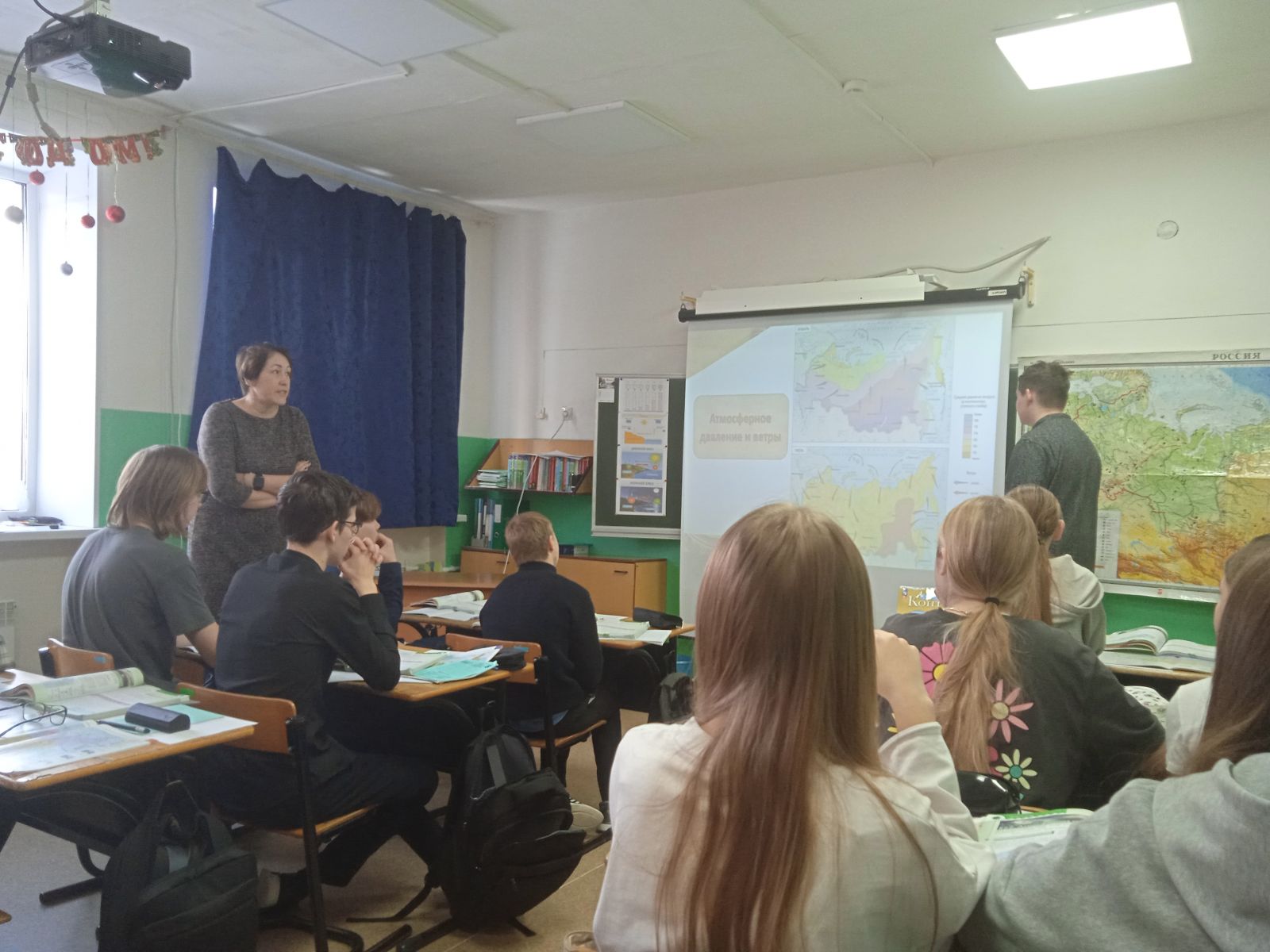 14 декабря был проведен урок географии в 8 классе по теме «Основные типы воздушных масс и их циркуляция на территории России. Атмосферные фронты, циклоны и антициклоны» (учитель Ухандеева А.М.)