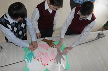 18 апреля 2017 года в нашей школе было проведено мероприятие на тему: "Вместе за руки идем". Цель данного мероприятия было научить детей дружить и быть готовыми всегда протянуть руку помощи друг друг. Детям было предложено посмотреть мультфильм про дружбу,поучаствовать в конкурсах и исполнить флешмоб.В завершении нашего мероприятия детям было предложено подарить тепло своих ладошек огромному сердцу,чтобы оно билось всегда.