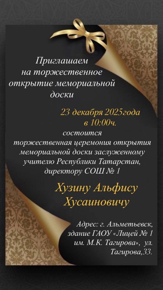 Торжественная церемония открытия мемориальной доски Хузину А. Х.