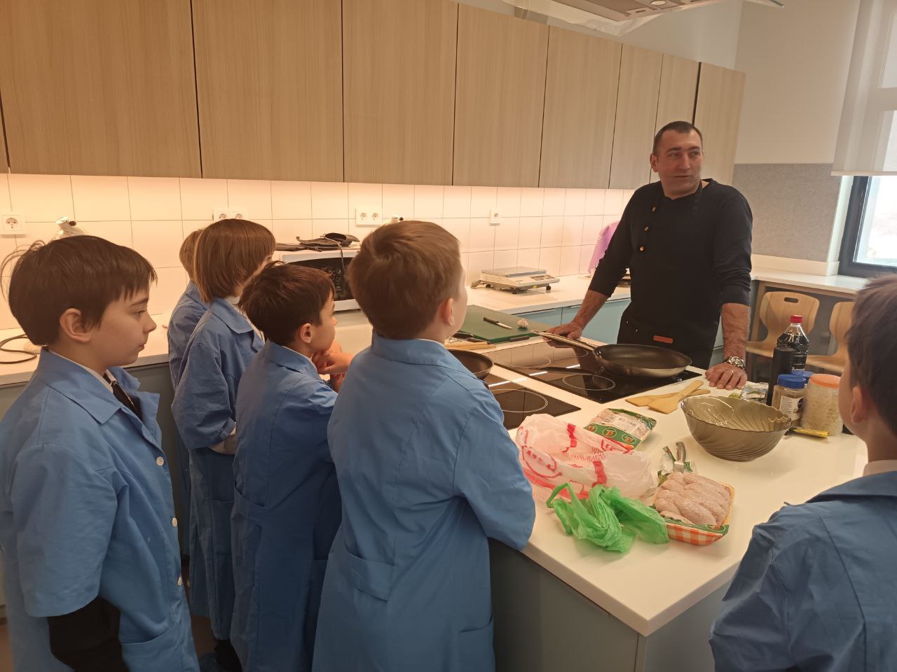 5 февраля 2026 года в нашем 4 классе прошел удивительно теплый и душевный мастер-класс. К ребятам заглянул особенный гость — Денис Николаевич, папа одного из учеников и участник СВО. Под его чутким руководством мальчишки превратились в настоящих поваров и приготовили потрясающие куриные крылышки в фирменном соусе с золотистой картошкой по-деревенски. Мы искренне благодарим Александра Андреевича за предоставленный кабинет кулинарии, подробный инструктаж и поддержку в организации. Было невероятно приятно наблюдать, как дети с азартом помогали повару, открываясь с новой, взрослой и положительной стороны. Завершился мастер-класс дружной дегустацией, а уже вечером во многих семьях на ужин готовили те самые крылышки по рецепту Дениса Николаевича . Но на этом сюрпризы не закончились. Весь класс подготовил подарки — шоколадки и письма для бойцов взвода, где служит папа Глеба. Мы также поздравили нашего гостя с днем рождения, пожелав ему крепкого здоровья, благополучия и самого главного — скорейшего возвращения домой с Победой!
