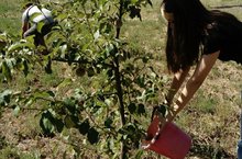 Создание чистой экологической атмосферы возле образовательных учреждений – это важно. Посадка плодовых деревьев – дело ответственное, требующее серьезного отношения. Ведь дерево сажают на годы, и от того, насколько правильно это будет сделано, зависит его судьба. Первые саженцы, посаженные в 2017 году, прижились и в этом году дали первый урожай. Сейчас установилась жаркая, засушливая погода. И конечно наши растения страдают. Но помочь им пережить засушливую или жаркую погоду нам вполне по силам. Достаточно сделать несколько поливов и опрыскиваний.