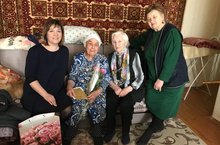 3 апреля коллектив нашей школы поздравила с юбилеем ветерана ВОВ Ахмадишину Асию Зинноровну.
