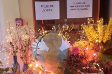 Неделя добра в нашей школе началась с экологических мероприятий. Ребят уже на входе встречали сверкающие огни инсталляции «Земля-наш дом».