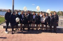 Акция «Голубь Мира» в нашей школе началась с «Урока добра», где классные руководители рассказывали о мире, добре и согласии. Совместно с МАОУ –«СОШ №17» наши участники Российского Движения Школьников изготовили белых голубей и оставили их на каскаде прудов нашего города. Завершили акцию запуском белых шаров.