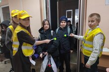 В рамках акции "Засветись" воспитанники кружка "ЮИД Дозор" провели проверку светоотражающих элементов на одежде и рюкзаках учеников 16.11.2024