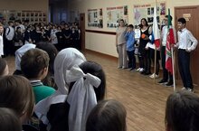 Утро 10 ноября началось с традиционной линейки, выноса флагов и исполнения гимнов РФ и Татарстана под руководством советника директора по воспитанию Латифуллиной Р.Ф. и педагога-организатора Садертдиновой А.З.