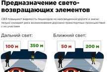 - Со световозвращателем это расстояние увеличивается до 130-200 метров!