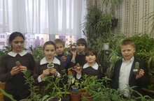 Участники объединения "Основы флористики и цветоводства" ухаживают за растениями в Зимнем саду