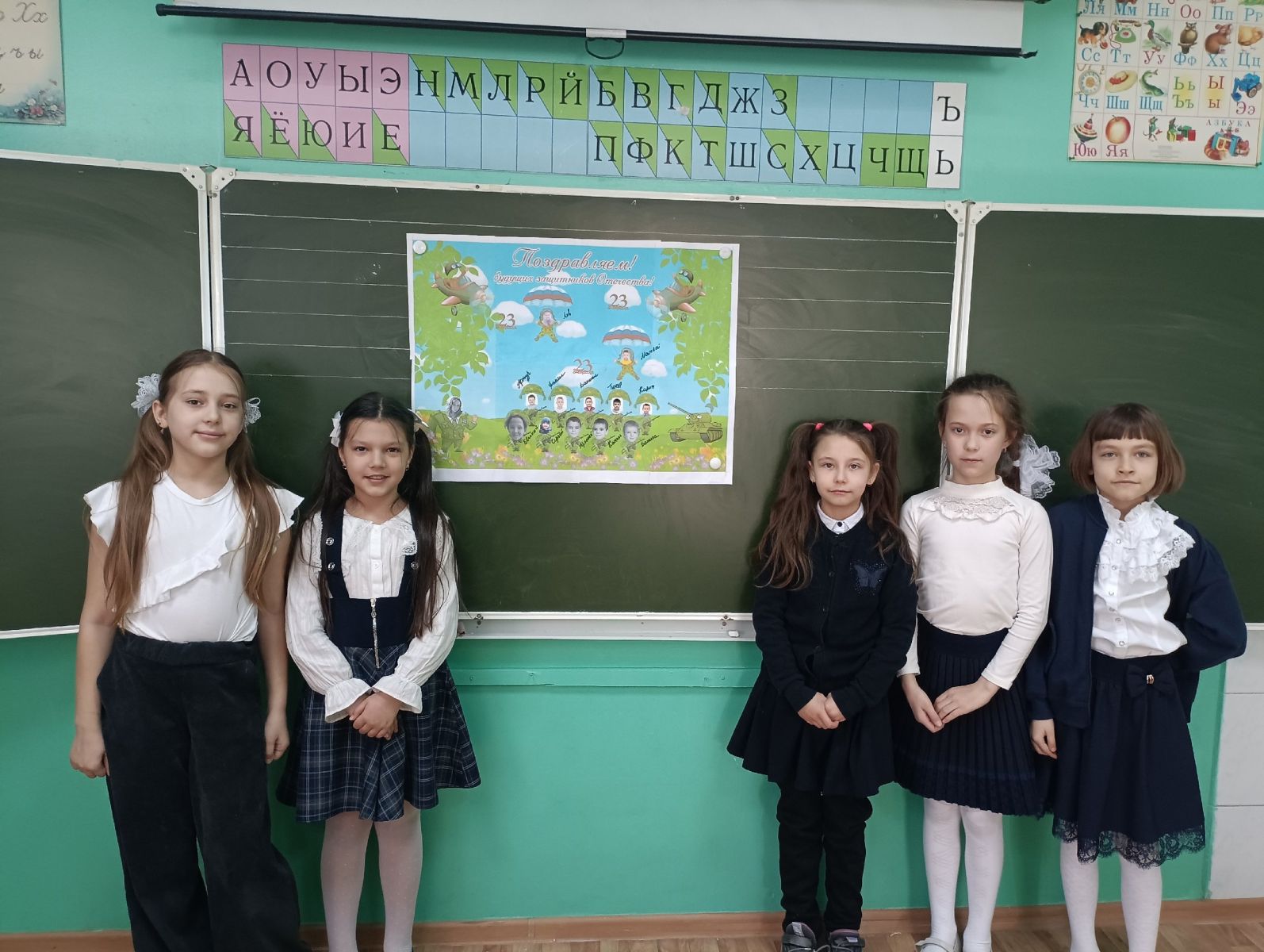 Учащиеся 5 класса организовали линейку "Поздравляем защитников Родины".