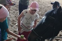 Побывали мы на ипподроме. Детям очень понравилось в конюшне. Даже покормили лошадей и покатались.