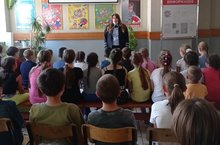 Встреча-лекция ребят из пришкольного лагеря с инспектором ГИБДД
