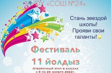 Дорогие друзья, мы снова запускаем наш ежегодный фестиваль "11 йолдыз". Первый тур - отборочный этап в классах с 9 по 26 ноября 2022 года. Успей показать свои таланты и получить шанс стать звездой школы. Подробности далее...