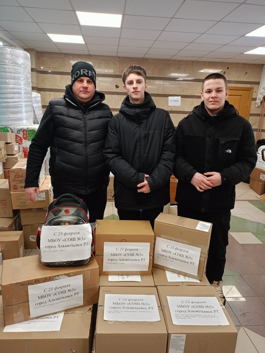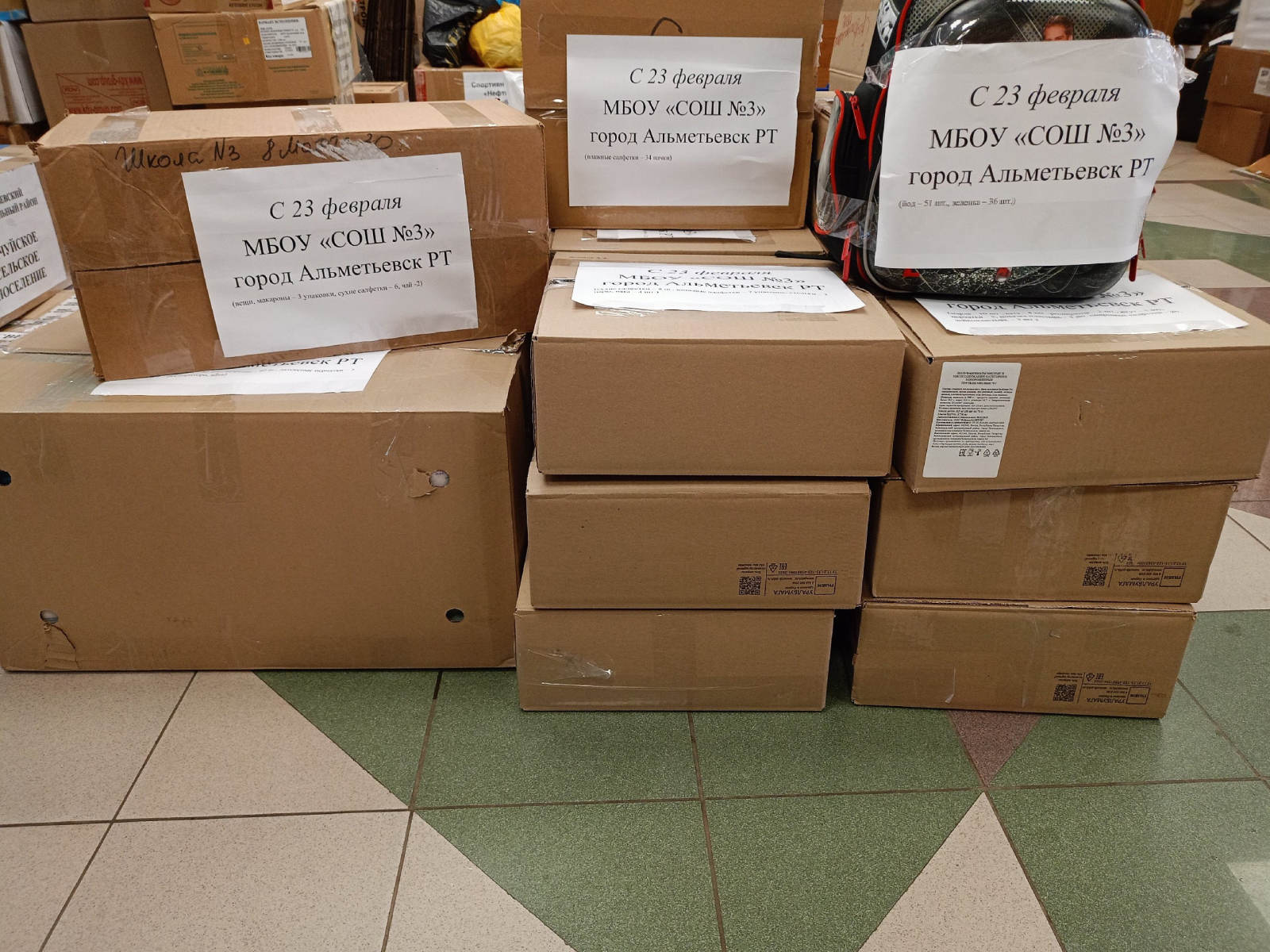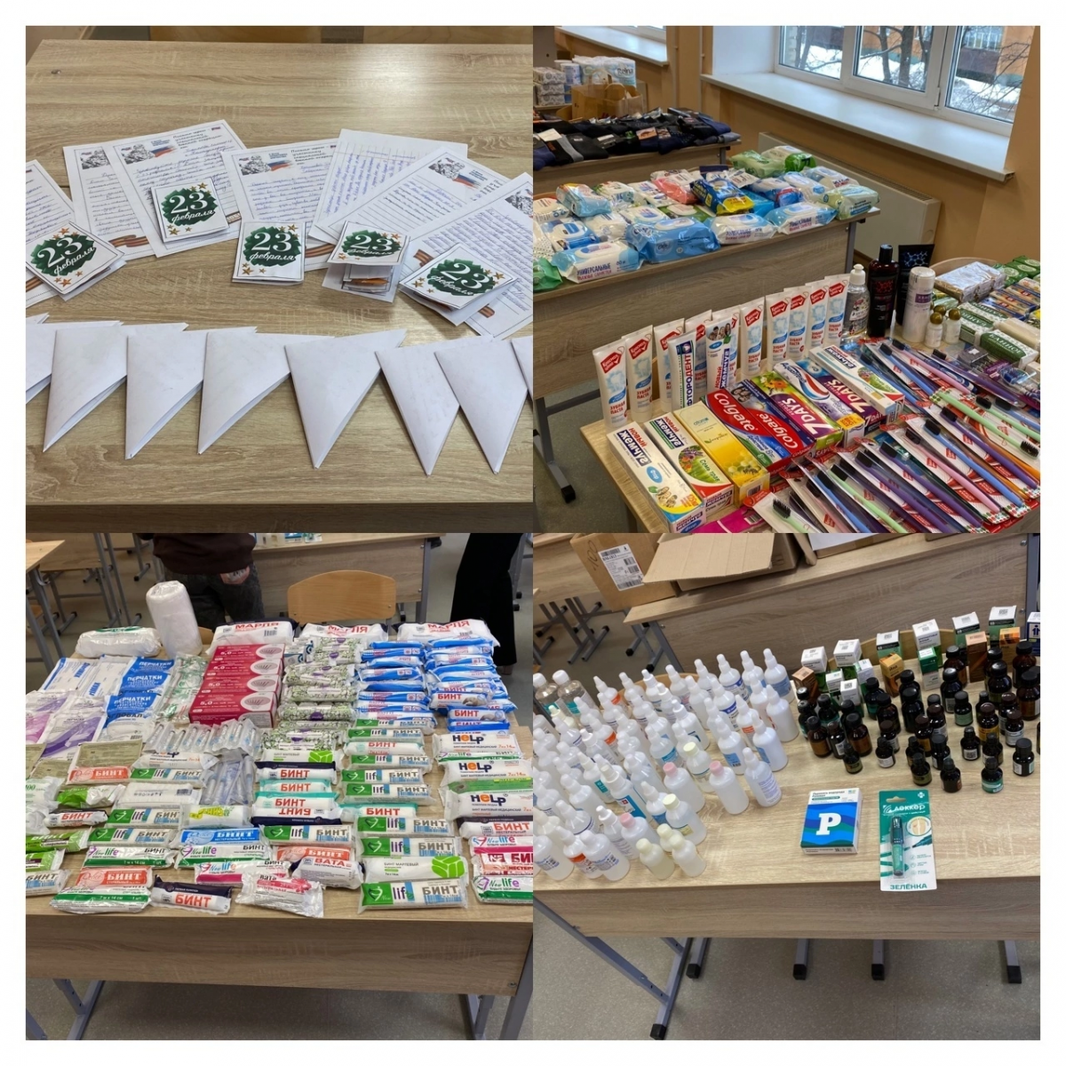 СОШ 3 активно приняла участие в акции по сбору гуманитарной помощи военнослужащим, находящимся в зоне СВО, приуроченную к празднованию Дня защитника Отечества!