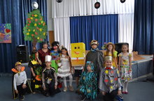 Для детей младших классов были проведены развлекательные игры и театрализованная постановка со сказочными героями, это: учитель танцев и его помощники Фантик и Фунтик, непревзойденный дворник, мальчик – спальчик в роли ученика, шапокляк и ее подружка. Каждый класс начального звена приготовил по 2 осенних костюма, сделанных своими руками. После демонстрации моделей и игровой программы, дети веселились и танцевали под зажигательную музыку!