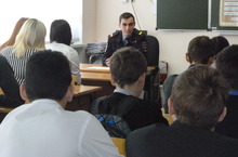 В преддверии Дня защитника Отечества, 20 февраля 2014 года, для учащихся 8-9 классов была проведена встреча с представителями Отдела вневедомственной охраны по Альметьевскому району – филиала федерального казённого учреждения управления вневедомственной охраны. С историей становления Отдела вневедомственной охраны, учебными заведениями, через которые можно связать жизнь с данным направлением, познакомили инспектор направления морально-психологического обеспечения группы кадров старший сержант И.В. Парфёнов и полицейский роты ОВО по Альметьевскому району сержант полиции И.К. Мирсалихов.