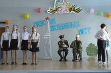 21 февраля 2014 года в школе прошёл конкурс инсценированной военно-патриотической песни «Песни военных лет» - одно из самых ярких мероприятий в рамках месячника военно-патриотического воспитания. Классные коллективы проявили себя в качестве артистов, исполнителей и режиссёров одновременно. По итогам конкурса распределение мест следующее: в младшей возрастной группе 1 место – 4а класс, 2 место – 3а, 3 место - 3б класс; в старшей возрастной группе 1 место - 6б, 2 место – 5б, 3 место – 8а и 5а классы. Кроме этого, жюри определило несколько номинаций. Пусть это останется сюрпризом для всех участников конкурса. Поздравим номинантов на общешкольной линейке.