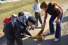 Засучив рукава, мы работали в поте лица. И вот на помощь к нам пришел 9б. Спасибо вам, ребята! С вашей помощью мы справились легко.
