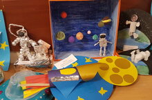 12 апреля наша страна отмечает праздник, связанный с по-настоящему значимым событием в истории нашей страны и всего мира – полетом человека в космос. В этот день в школе прошли многочисленные мероприятия, посвященные Дню космонавтики. Для наших самых младших любителей космоса - обучающиеся начальных классов - прошли тематические уроки и викторины. Дети знакомились с биографией первых космонавтов, материалами об освоении космоса, отвечали на вопросы викторин, создавали лэпбуки и плакаты на космическую тематику, а на уроках физкультуры принимали участие в «Космической эстафете». Для учащихся 1-11 классов в этот день прошли классные часы с просмотром презентаций и видеоматериалов, а также «Гагаринский урок», Все желающие также могли присоединиться к флешмобу «Я - ракета» и акции «День космонавтики», организованной ученическим самоуправлением ДОО «Созвездие». В фойе 1 этажа традиционно развернулась выставка работ обучающихся «Поехали!»
