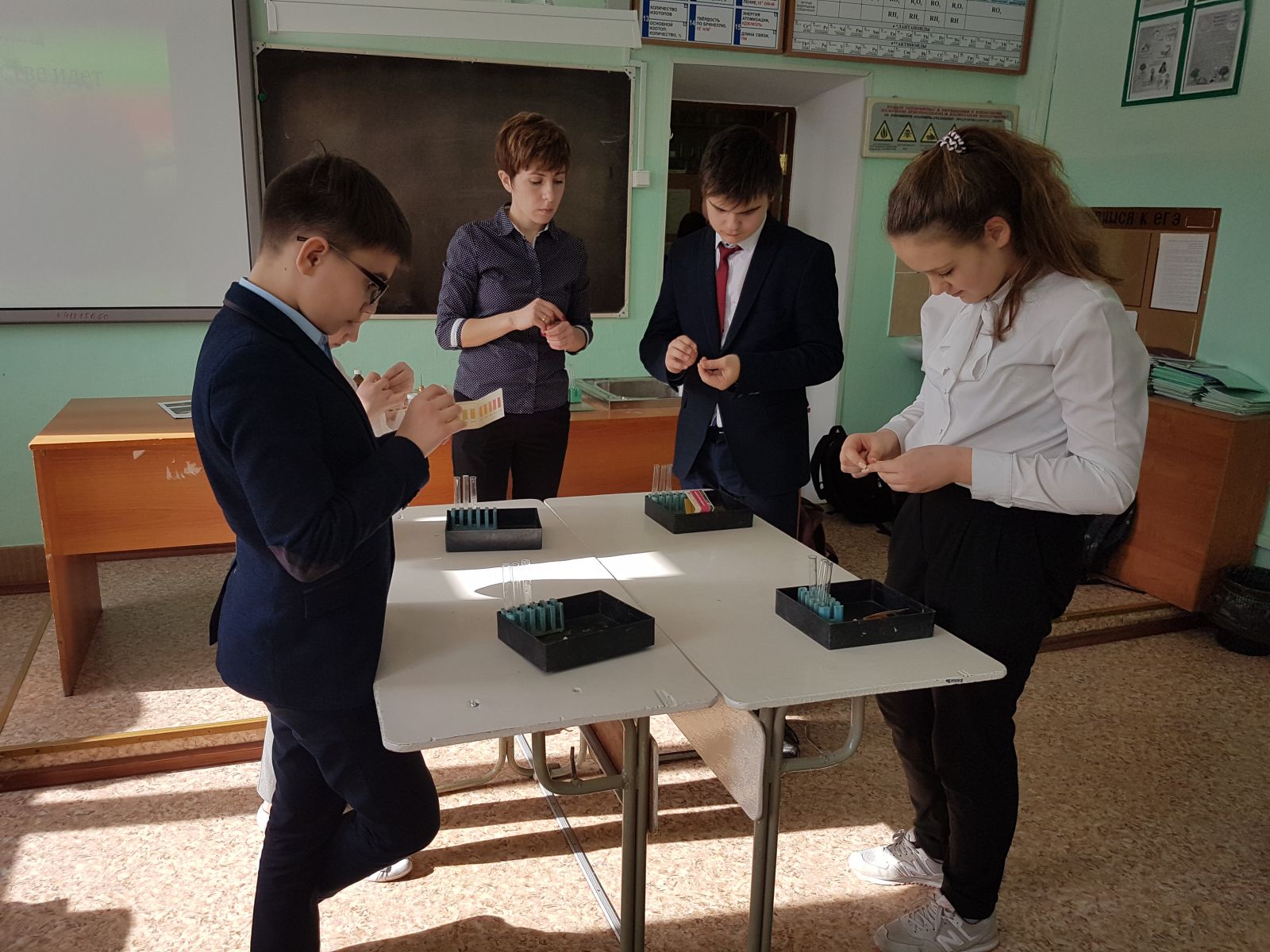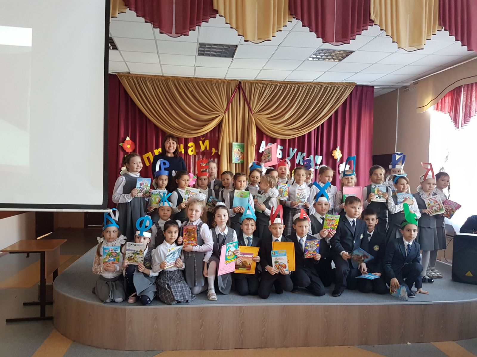 У нас учат: 37 учителя; Язык обучения: русский