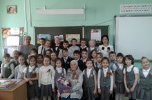 Марина Владимировна принесла фотографии, вырезки из газет, боевые награды, военный билет своего дедушки Конева Ивана Никитича, прапрадедушки Дарьи Пушкаревской – одной из первоклассниц гимназии, Всем хотелось посмотреть и дотронуться до орденов и медалей. Марина Владимировна показала первоклассникам переизданную копию настоящей газеты «Правда», датированную 1945 годом. Затаив дыхание, дети слушали об ужасах войны, задавали вопросы. В заключении поздравили с 72 годовщиной Великой Победы и вручили цветы.