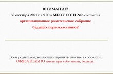 Оргнизационное родительское собрание будущих первоклассников! 18.10.2021