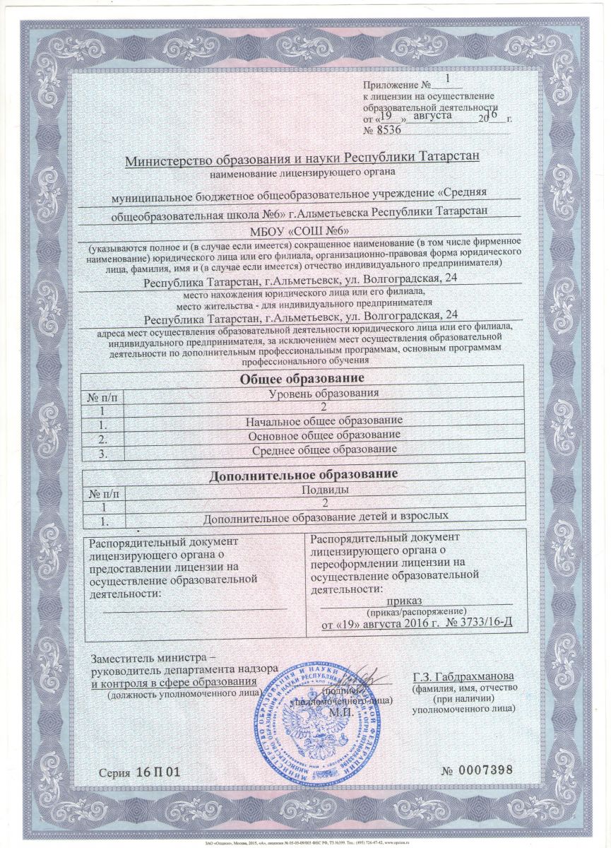 | Короткое название: | МБОУ "СОШ № 6" г.Альметьевска РТ |