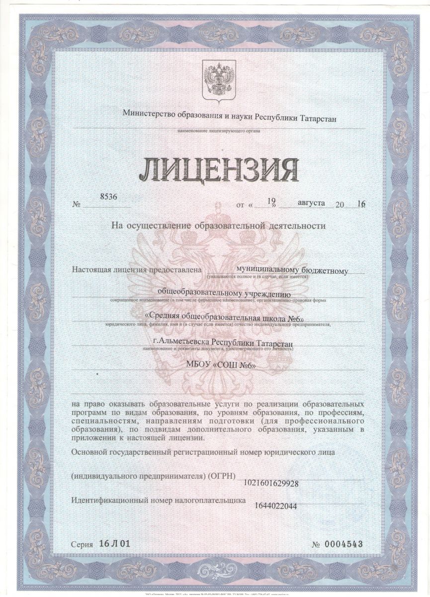 Муниципальное бюджетное общеобразовательное учреждение «Средняя общеобразовательная школа №6» г.Альметьевска Республики Татарстан
