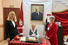 Вот такая историческая фотозона «Рожденное великим октябрем» ждала наших гостей на семинаре