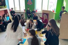Выпускники снимают эмоциональное напряжение посредством игропрактик. "Свой среди своих" психологическая игра в ходе которой выполняют задания, отвечают на вопросы, которые позволяют им увидеть друг друга с самых разных сторон, укрепить дружеские отношения. -