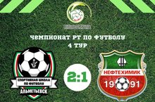 Чемпионат РТВоспитанники «СШ Альметьевска» обыграли одного из лидеров Закамской группы Чемпионата РТ нижнекамский «Нефтехимик». Первые два гола в этой встречи были забиты с пенальти: на гол Ильхама Яруллина из Альметьевска через две минуты с одиннадцатиметровой отметки ответил нижнекамский Максим Макаревич. На 38-й минуте хозяева вышли вперёд благодаря точному удару Николая Белова, а уже во втором тайме сделали всё, чтобы более опытный соперник не увёз из Альметьевска ни одного очка.