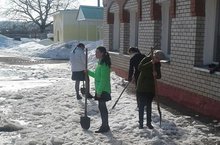 В рамках санитарно - экологического двухмесячника учащинся школы, очищали школьную территорию от снега.