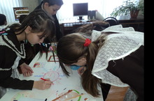"Күңелле карандаш" түгәрәгенә йөрүче 5, 6 нчы сыйныф укучылары Яңа ел бәйрәменә газета чыгару өстендә эшлиләр. Җитәкчесе Валиева Д.И.