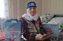 Директор школы Гузалия Анваровна поздравила свою первую учительницу, ветерана педагогического труда Сулеевской школы, тыловика ВОВ Садриеву Музаяну Закировну с Днём Победы