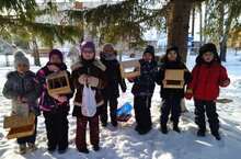 В первом классе прошел Урок доброты. Сделали кормушки для птиц и повесили на деревьях территории школы.