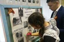 ВЕЛИКАЯ ПОБЕДА-75” Боек Жиңугэ 75 ел тулуга багышлап мәктәпләрдэ хәрби-патриотик айлык башланды. Буген безнең мәктәп укучылары зур тарихи вакыйганын шаhитлары булдылар. Сөлэй авылында туган якларына исән-сау әйләнеп кайткан hәм тыныч вакытта вафат булган Боек Ватан сугышында катнашучыларның исемнәре язылган истәлек стенды ачылу тантанасы булды. Фотода 1 сыйныф укучылары.