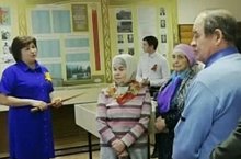 “ВЕЛИКАЯ ПОБЕДА -75” В школе идет месячник военно-патриотического воспитания. 5 февраля в школе была организовано уникальное мероприятие- встреча с родными и близкими Героя Советского Союза -Мутыга Ахметзяновича Ахмадуллина. На встрече приняли участие: сын Мутыга Ахмадуллина Марат и его жена Зинфира, двоюродные братья и сестры: Барый Хафизов, Сария Ахмадуллина, Гузель Курычбаева, Расилэ Якупова. Затаив дыхание, мы слушали их. Скромные, добрые, светлые люди. Низкий вам поклон, продолжатели династии Ахмадуллиных.