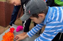 Дети в пришкольном лагере вместе с советником по воспитанию Фазлиевой Л.Р и воспитателями пришкольного лагеря изготовили бумажные гвоздики. Также дети пришли к памятнику ,вспомнили погибших минутой молчания, возложили цветы к памятнику. -