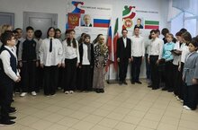 Каждый понедельник проводим традиционную линейку — торжественно вносим государственные флаги России и Татарстана, вместе исполняем гимны наших стран.