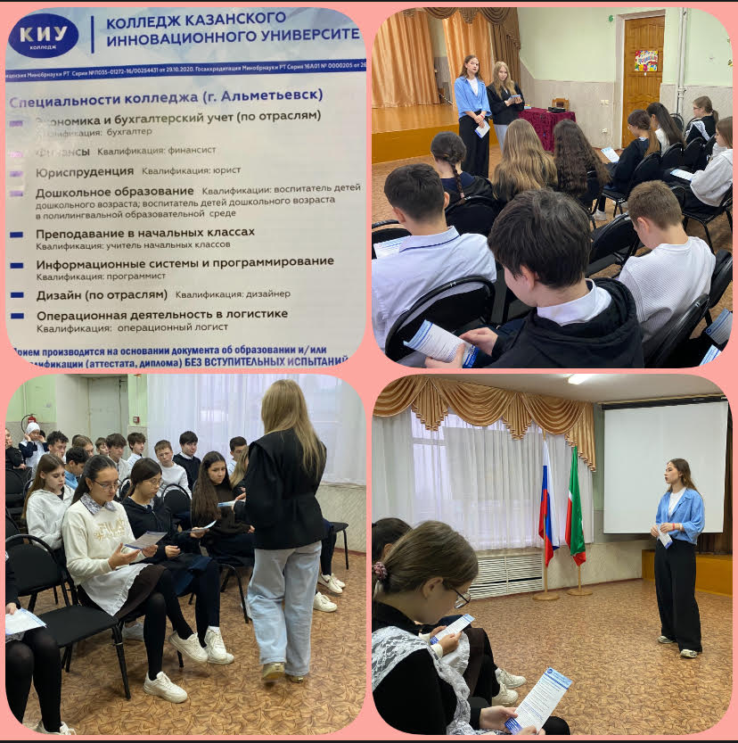 Студенты Казанского инновационного университета имени В.Г. Тимирясова (КИУ) организовали и провели важную профориентационную встречу с учениками 8-9 классов. Мероприятие было направлено на помощь подросткам в выборе будущей профессии и осознании перспектив профессионального развития.