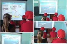 С участием юнармейцев был проведен открытый урок посвящённый, годовщине воссоединения Крыма с Россией!