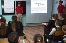 Члены Юнармии школы провели классный час посвященный 100-летию со дня рождения М.Т.Калашникова.