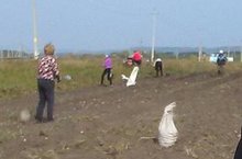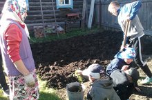 Уборка урожая картофеля учителями, учащимися и работниками школы.