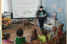 Балалар патриот шагыйрьнең тормыш юлы, иҗаты белән таныштылар, шигырьләрен тыңладылар, яңа мультфильмны карадылар. -
