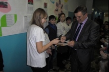 Директор школы , З.А.Замдиханов, на школьной линейки в торжественной обстановке вручил участникам республиканского антинаркотического проекта пластиковые карточки, которые используются при покупке товара со скидкой 5%.