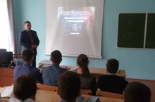 На основании указа Президента РФ о праздновании 75 -летия разгрома советскими войсками немецко-фашистских войск в Курской битве в 7-9 классах была проведена беседа «Курская битва».(учитель Хабибуллин Р.И.)